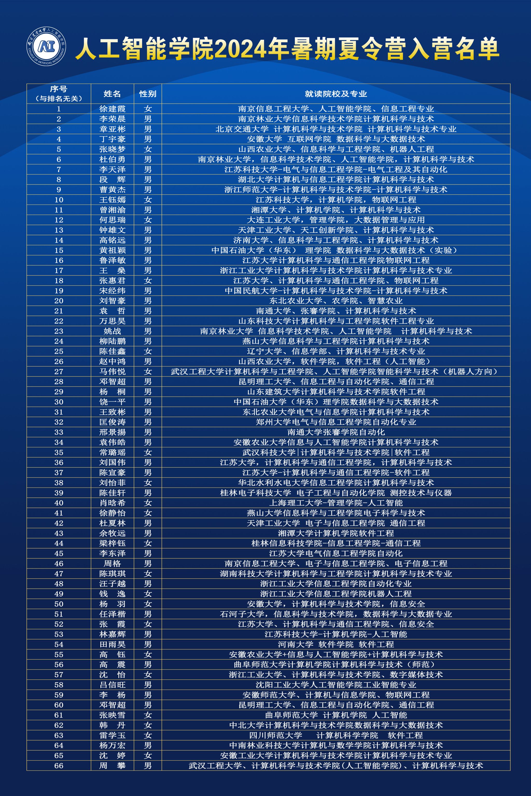 现将2024年日本无码 日本无码 优秀大学生暑期夏令营入营名单公示如下:
