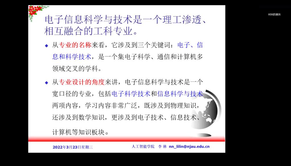 紧接着,电子信息系李林从研究内容、培养方向、培养目标、保障体系和条件等方面详细地介绍了电子信息科学与技术专业,并将专业与“人工大脑”等高新技术结合起来,进一步强调了此专业的重要性。同时,李林勉励同学们一起学习、一起经历、一起成长。