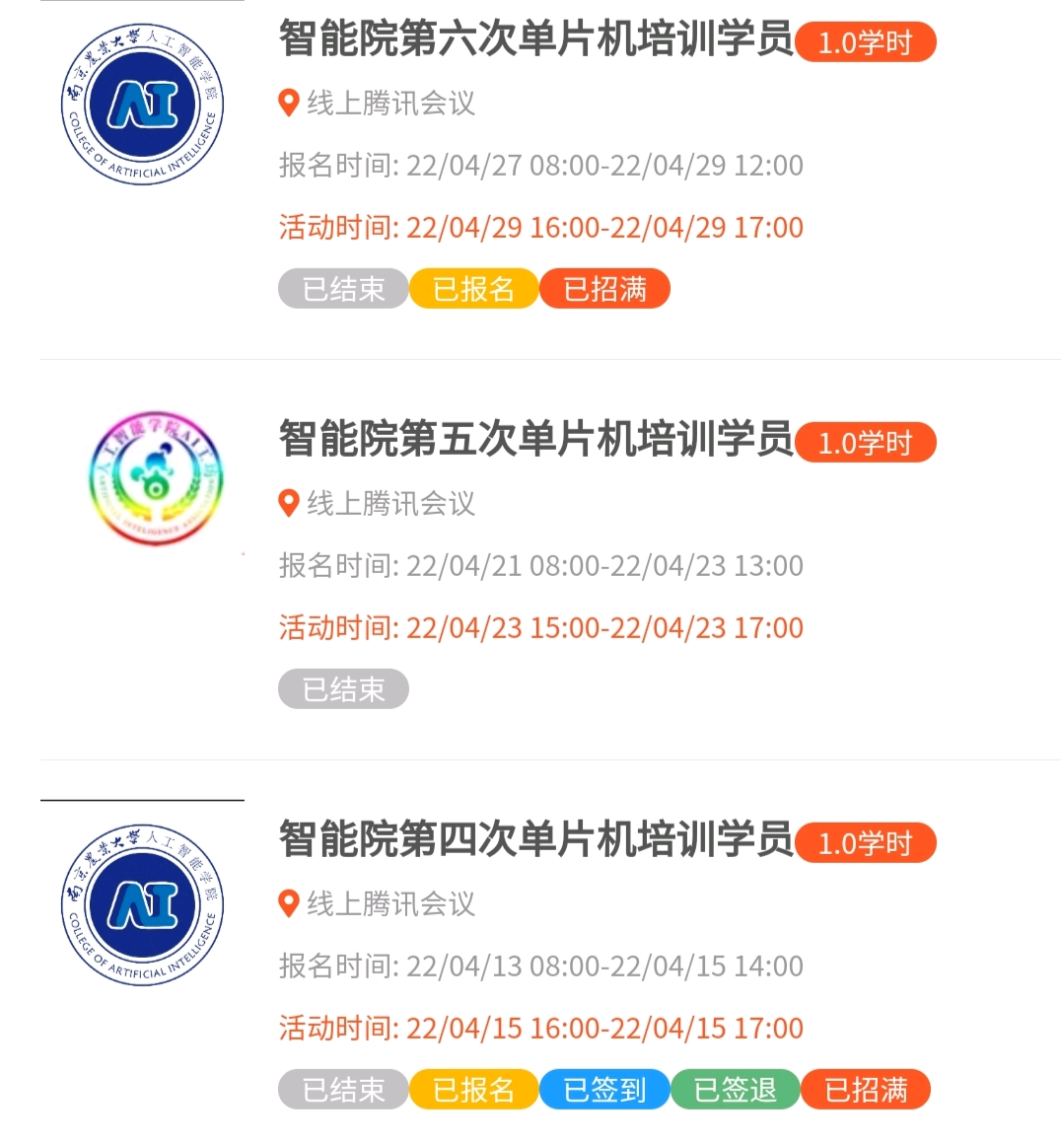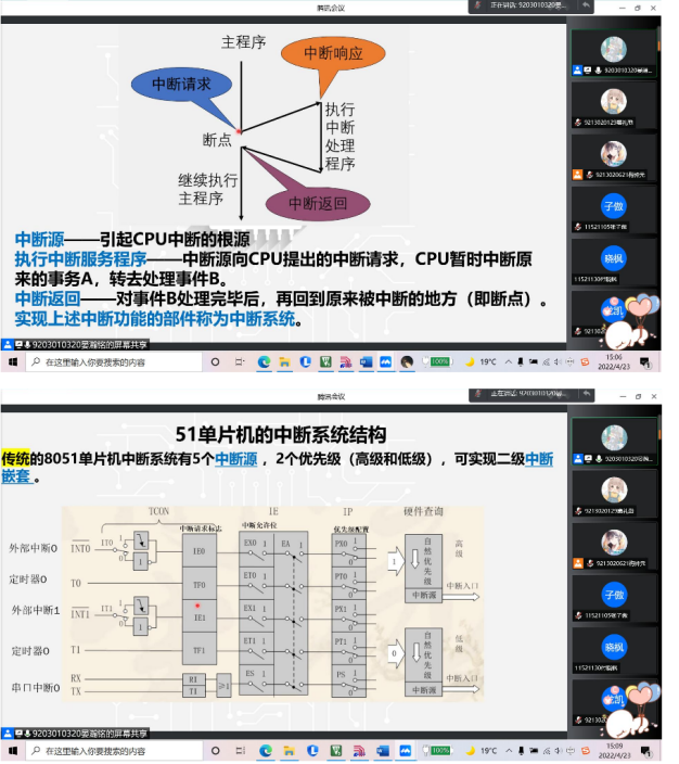 本次由单片机培训严格遵守学校防疫规定,采用线上腾讯会议的方式开展,从组织到结束都井然有序。在这6次51单片机培训前,工作人员在第二课堂发布相关活动,通过学院官方QQ号等宣传媒介进行广泛宣传,同学们积极踊跃报名。此次培训内容为51单片机基础模块:流水灯,独立按键,动、静态数码管,LCD1602,矩阵按键,中断系统,定时器,计数器。相信参与培训的同学们对51单片机基础模块的工作原理、使用方法的理解都越来越清晰。