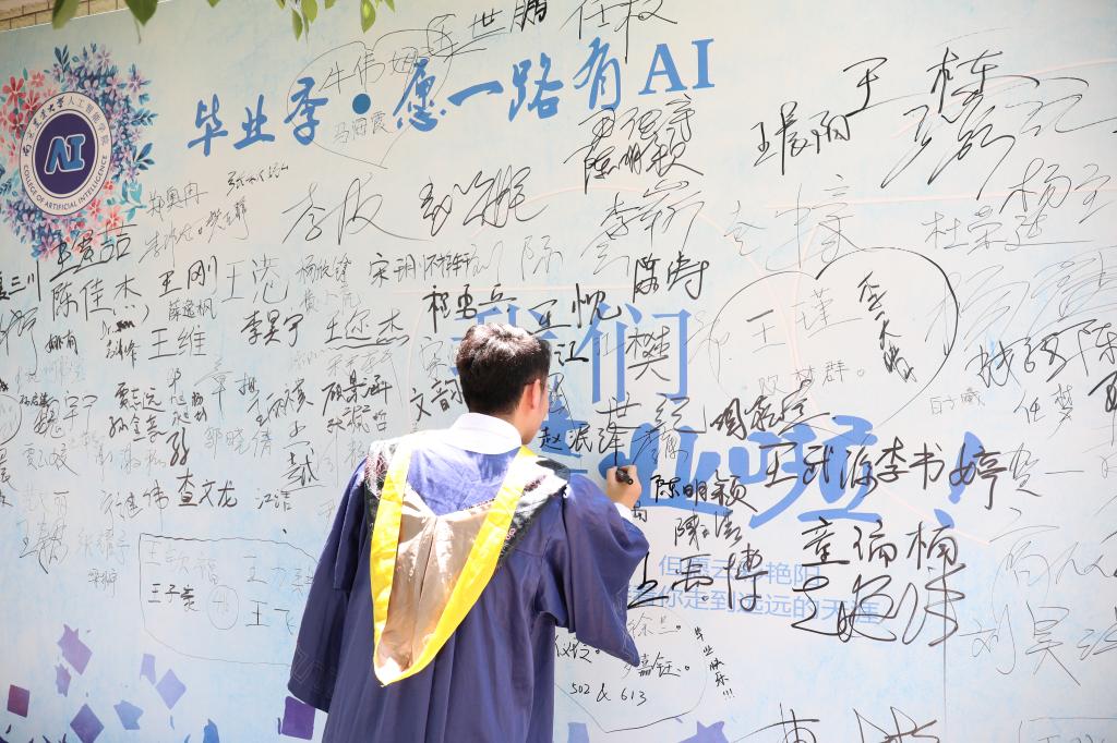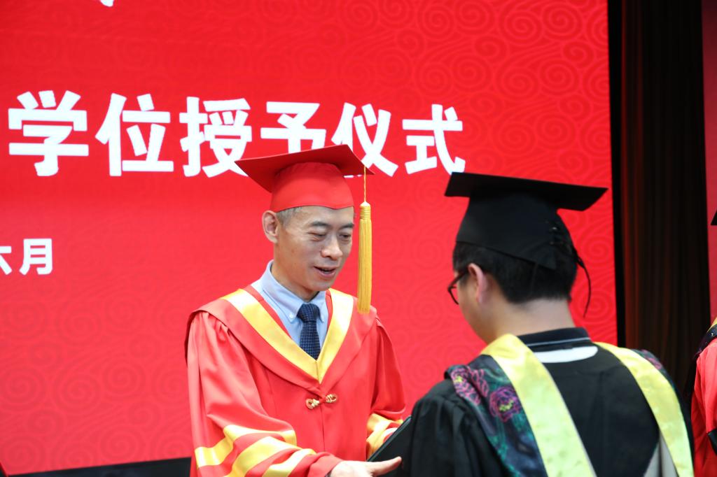 王春春、徐焕良、沈明霞、计智伟、林相泽、陆明洲分别为本科生、研究生扶正流苏,依次给获得学位的毕业生授予学位并合影。
