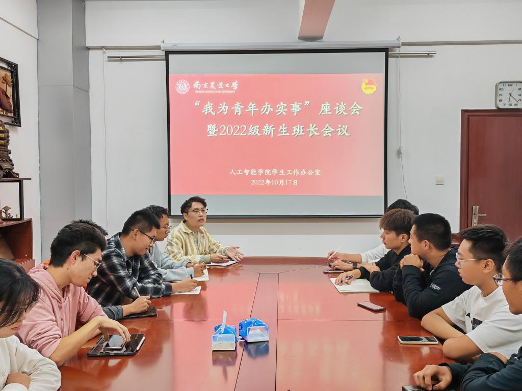 在育贤楼B311会议室组织召开“我为青年办实事”座谈会暨2022级新生班长会议。新生辅导员李洪老师主持会议,2022级全体班长参加。