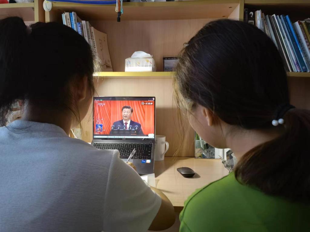 今天我们共同聆听了习近平总书记铿锵有力的讲话,句句锱铢,字字珠玑,让我们青年人为祖国经济实力的腾飞而自豪骄傲。其中习近平总书记谈起了从现在起中国共产党的中心任务:团结带领全国各族人民全面建成社会主义现代化强国,实现第二个百年奋斗目标,以中国式现代化全面推进中华民族伟大复兴。习近平总书记坚定的眼神以及感人肺腑的演说让我们青年深知肩膀上沉重的担子,愿当代青年不负青春,不负韶华,为祖国的繁荣昌盛贡献微薄之力,并让无数微薄之力汇聚成强大推力,铸就中国崭新的未来!