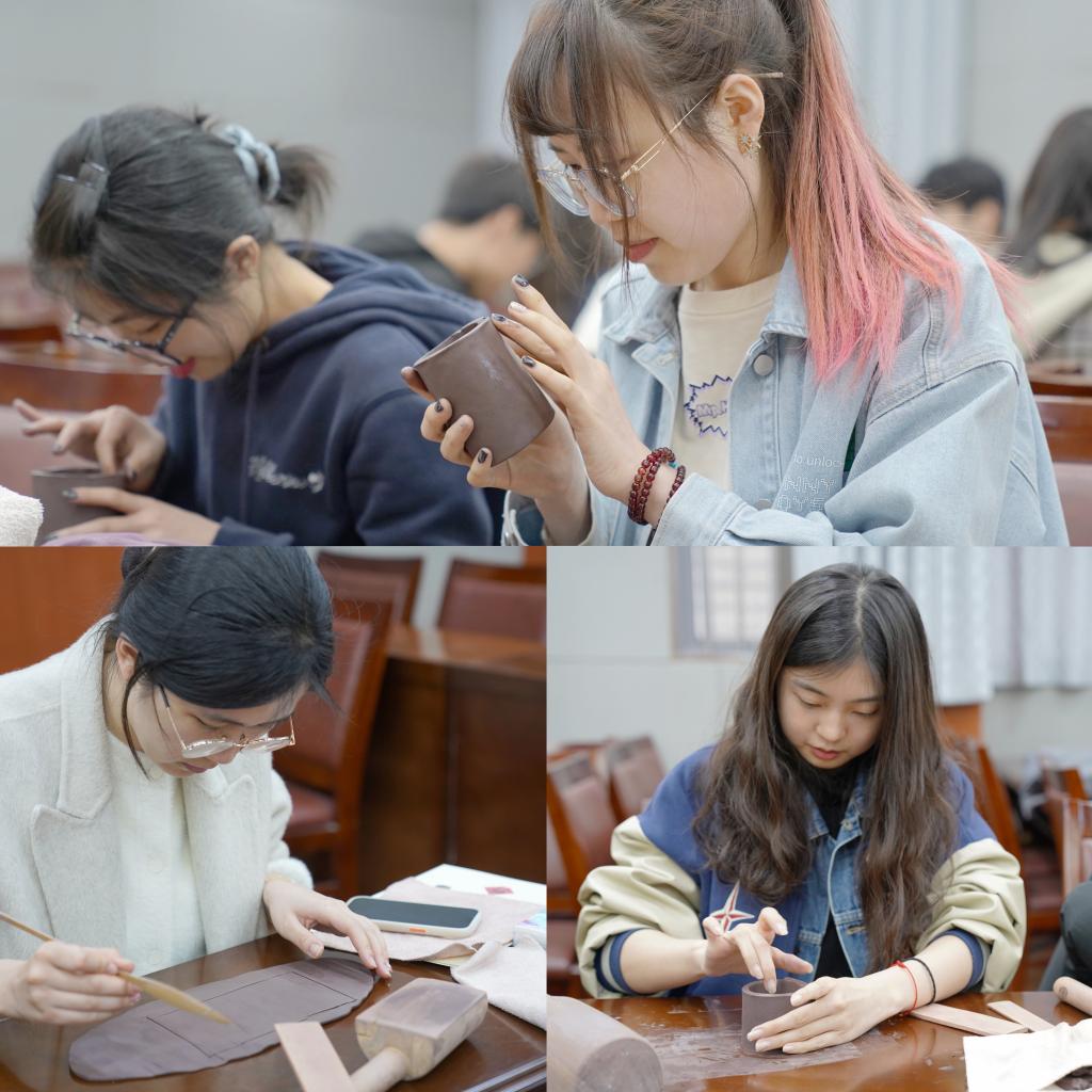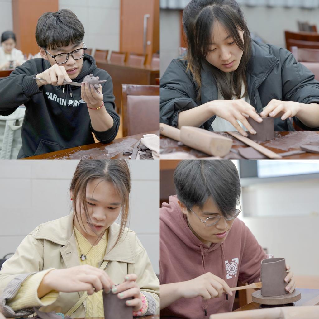 在经过一系列学习后,同学们纷纷动手尝试紫砂作品的制作,在创作中尽情地释放艺术创造能力,并在实践中感悟紫砂陶艺的魅力,现场氛围热烈,活动成效良好,大家都乐在其中,充分展现了人工智能学院学生心灵手巧、创意无限的良好风貌。