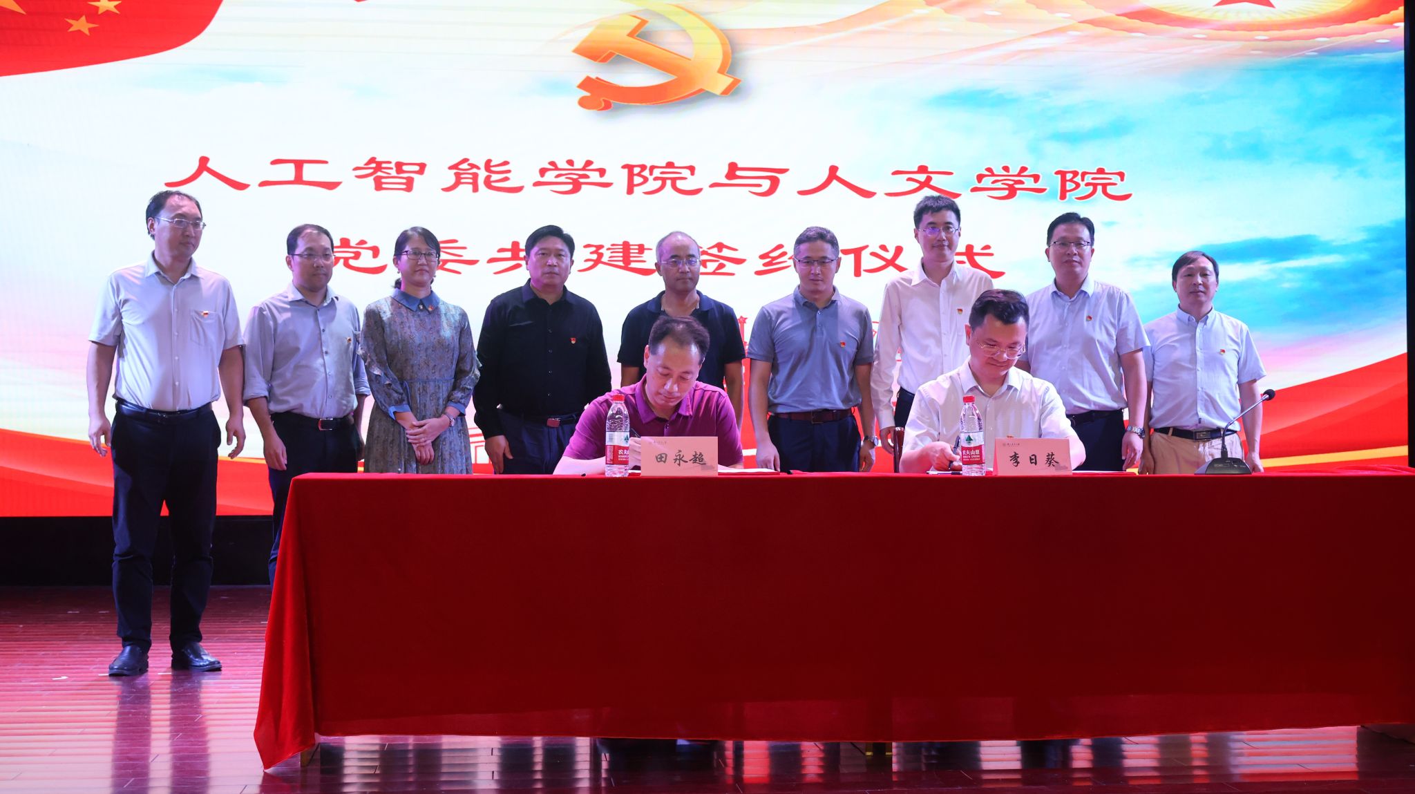人工智能学院党委书记田永超与人文与社会发展学院党委书记李日葵上台签订《党委共建合作协议书》,两院领导共同上台见证并合影留念。签约仪式后,日本无码