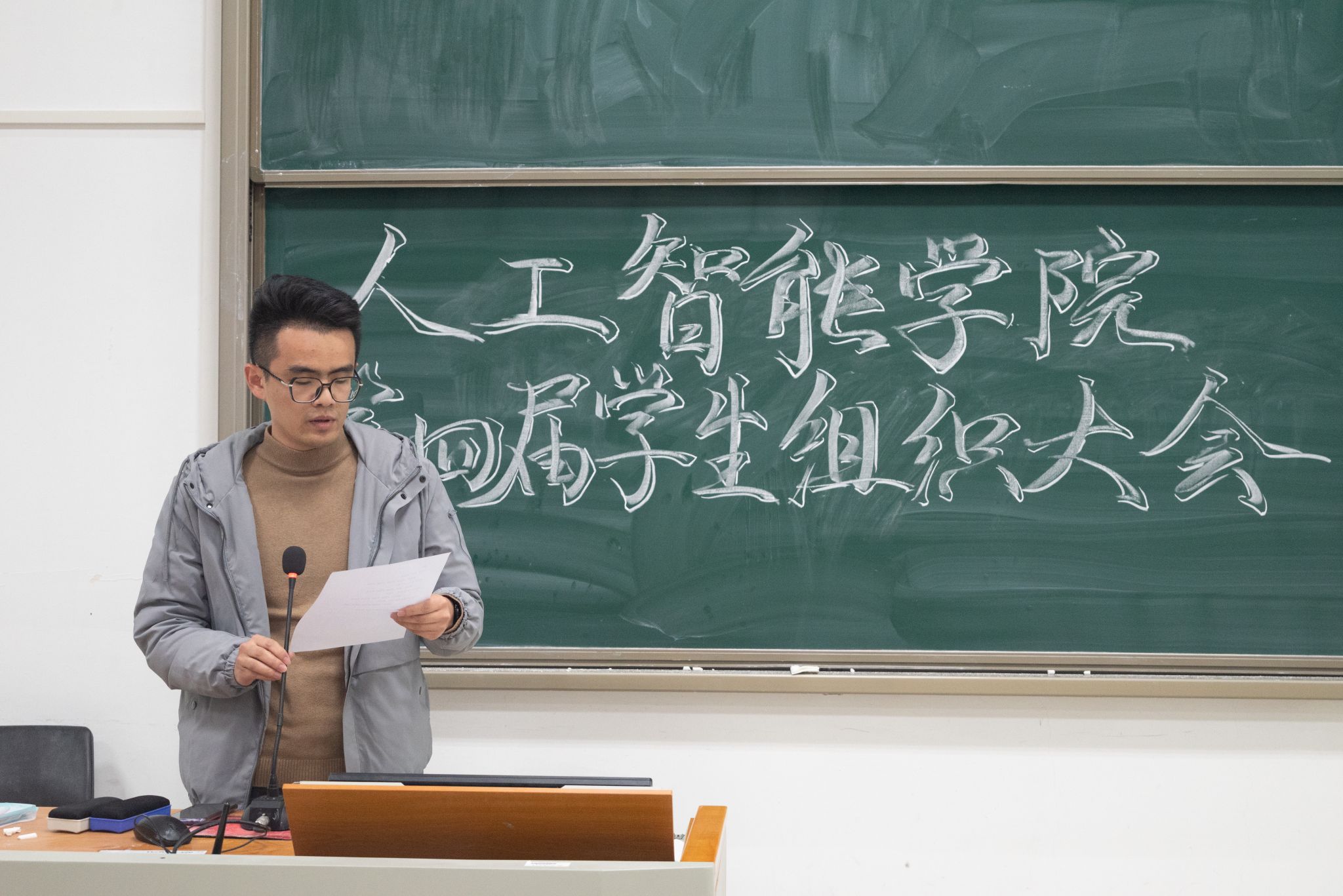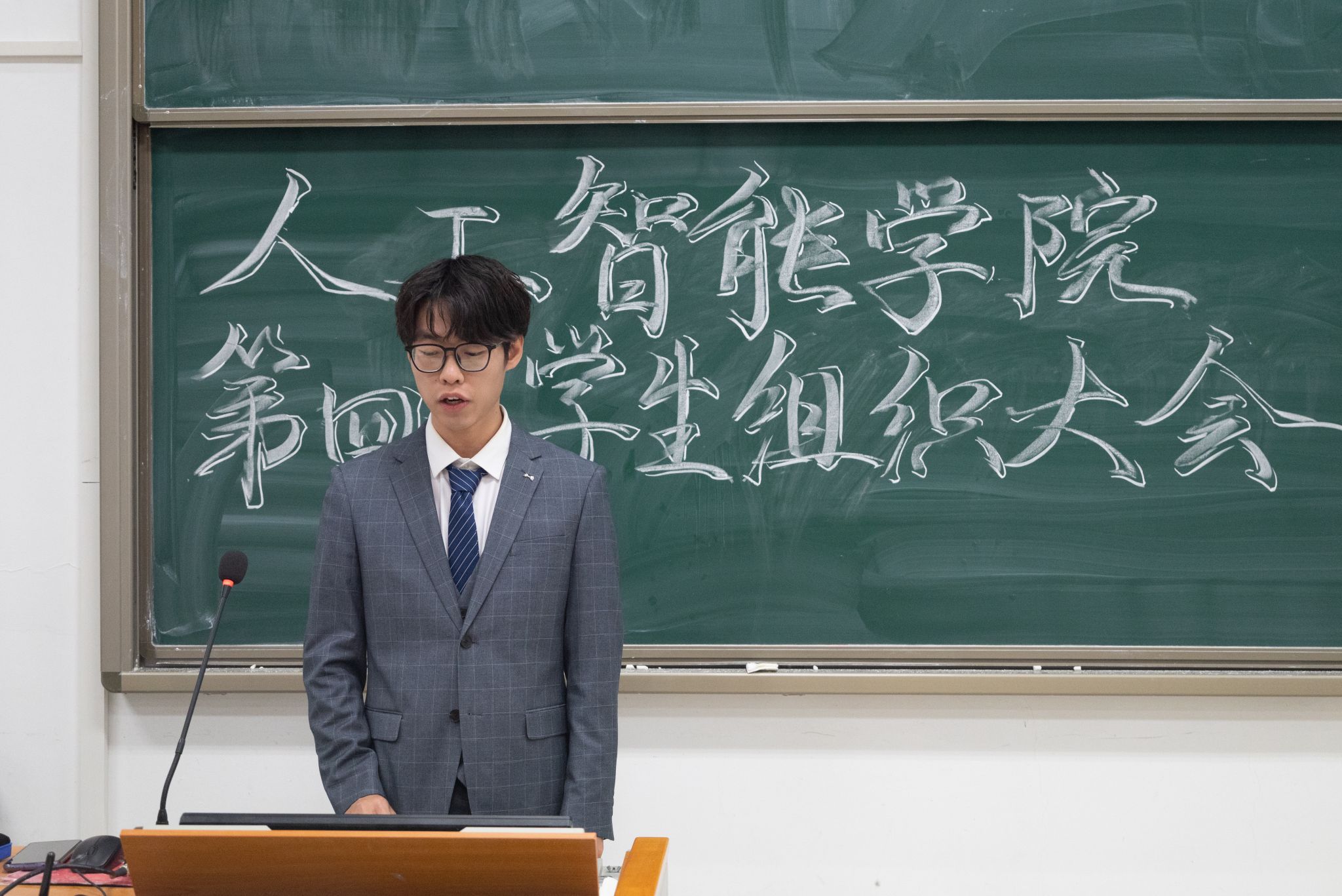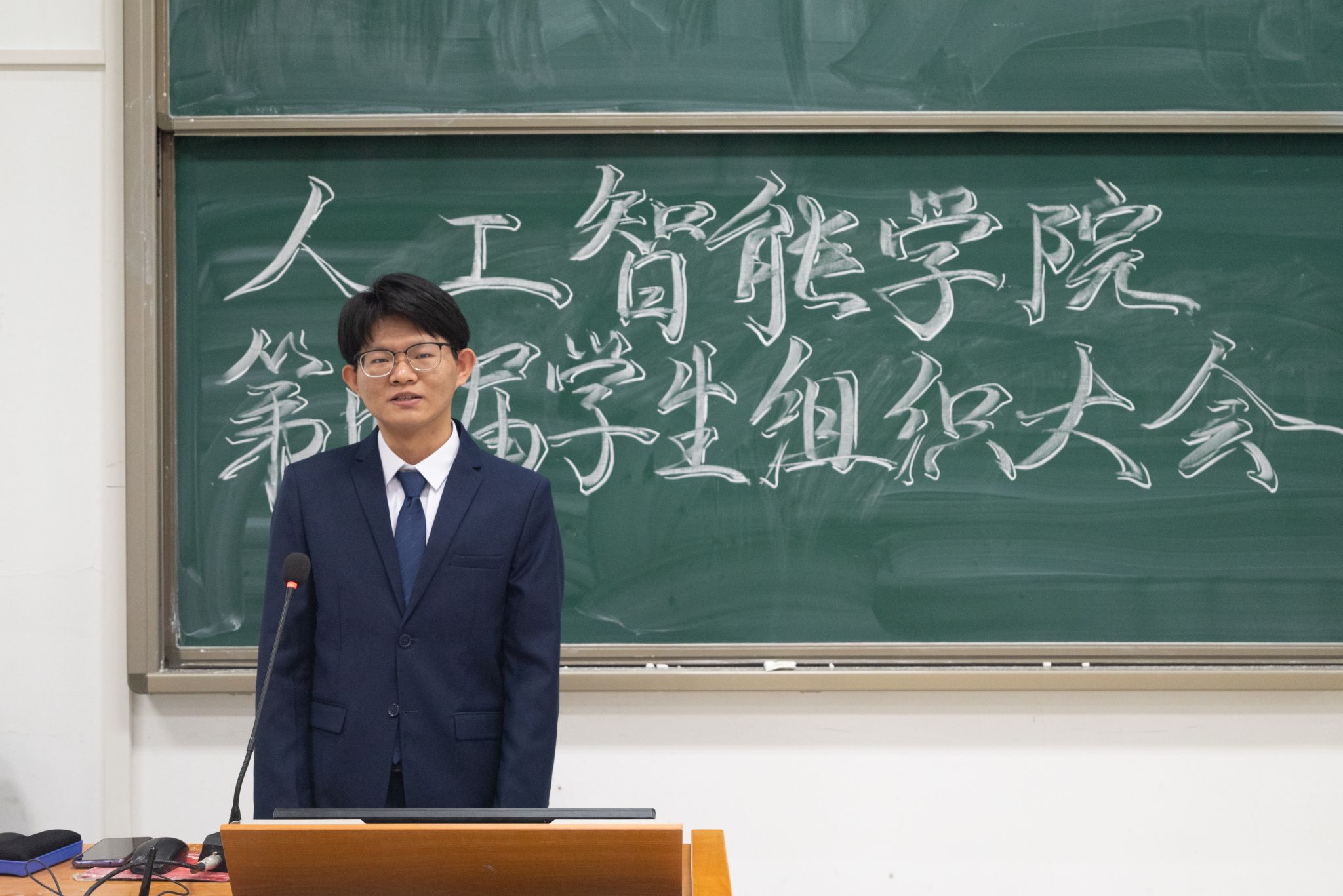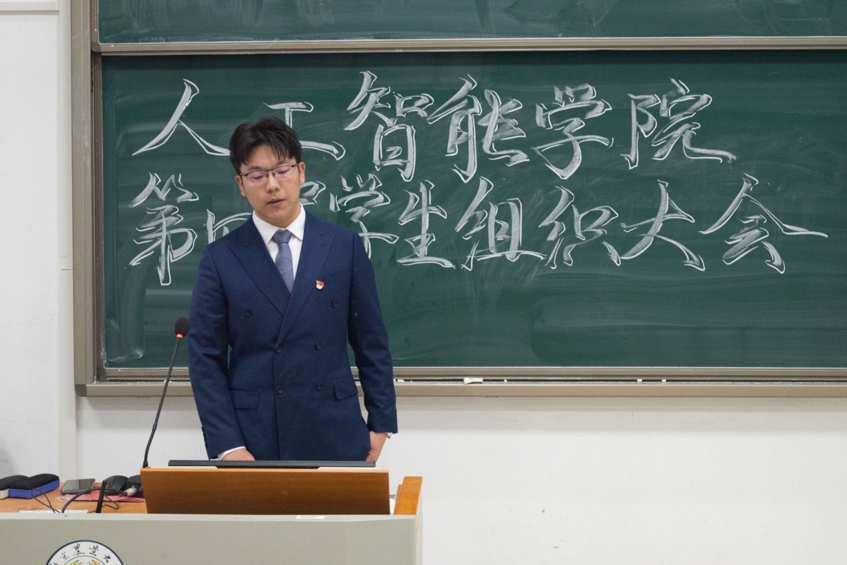 随后,议程第二项,分党校秘书长沈豪杰、学生团委副书记王佳辰、学生会执行主席吴刘柯、全媒体中心主任黄逸宸、AI工坊主席张国航依次上台,分别介绍了学院五大学生组织的职责分工与建设成果,充分展现了日本无码