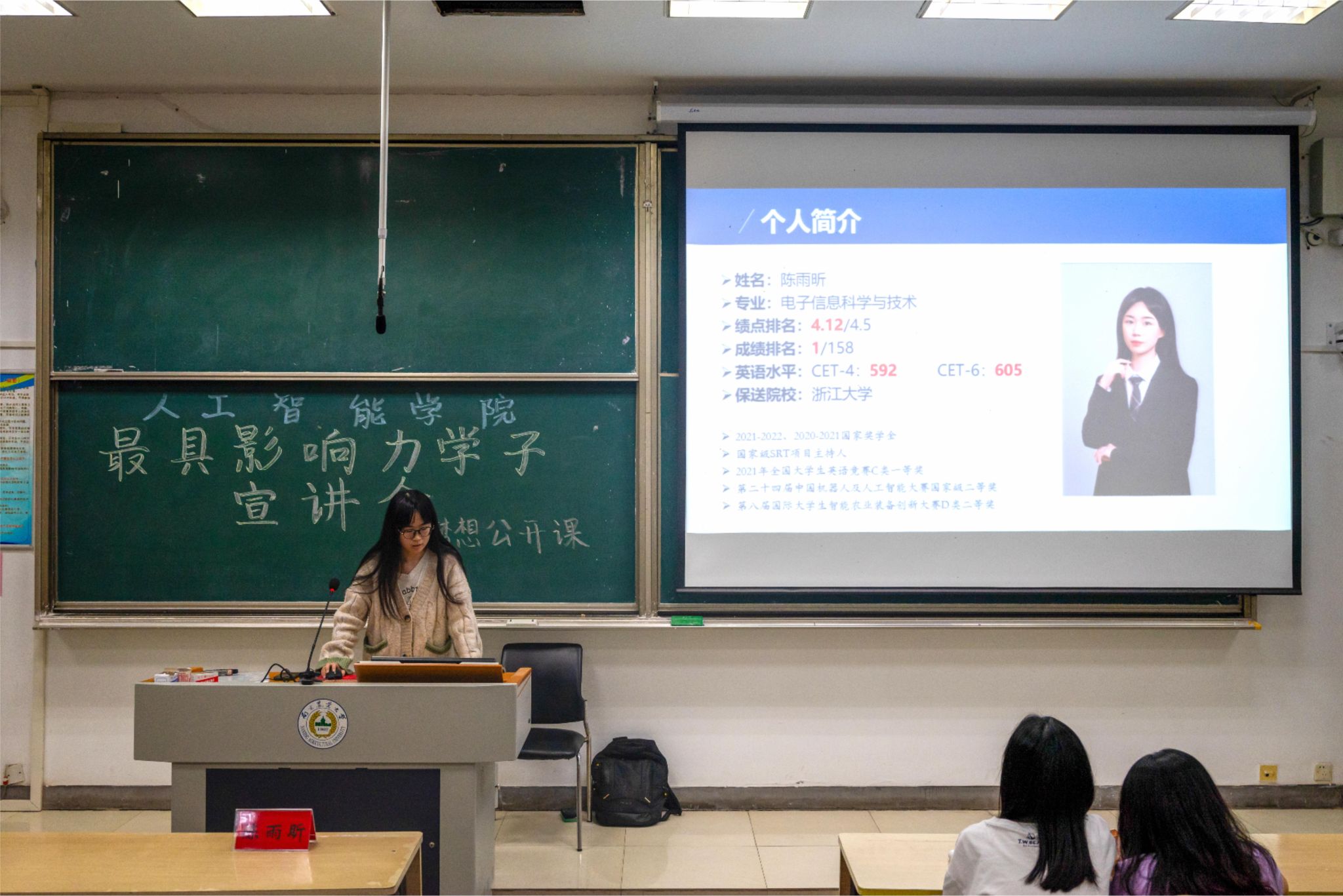 最具影响力学子——陈雨昕(电信201班)、夏烨(计科201班)进行经验分享,学院100余名学生参加了本次活动。