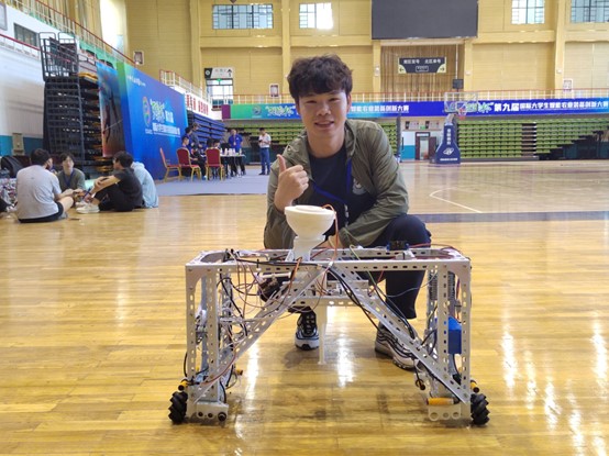 二等奖作品《跨垄式棉花变量播种机器人》为改善人工播种劳动力投入大的问题,设计出一款基于STM32的全自动播种机器人。该机器人可分为三个部分:行走系统、播种系统、二维云台定位系统。通过可编程摄像头OpenMv,识别播种板的种类,并将播种板的视觉坐标与视觉的中心坐标做比较,结合PID算法,得到二维云台的各个关节电机的控制量,从而瞄准播种板中心,实现闭环控制,做到精准播种。