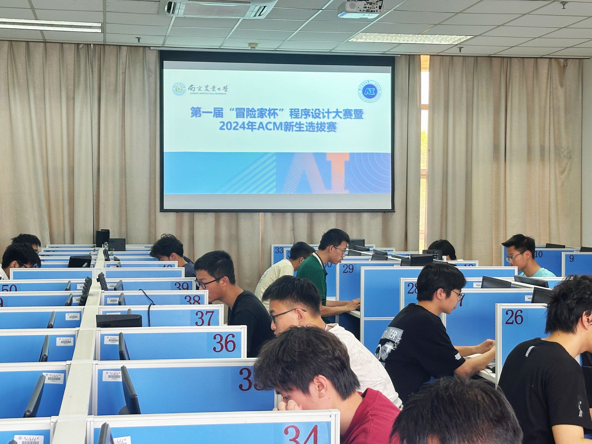 5月18日,决赛在浦口校区图书馆4号机房举行。本次比赛吸引了来自各学院的编程爱好者齐聚一堂,共同挑战自己的编程极限。决赛采取IOI赛制,时长3小时,参赛选手可在比赛过程中看到实时排名。