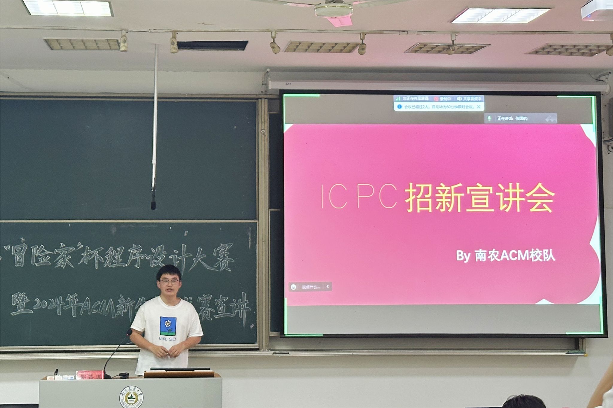 4月27日,大赛宣讲会在浦口校区汇贤楼C102举行,由组委会对本次大赛的参赛形式、竞赛内容、奖励办法、竞赛安排等进行说明,并邀请ACM校队成员介绍本次校队选拔的有关要求。
