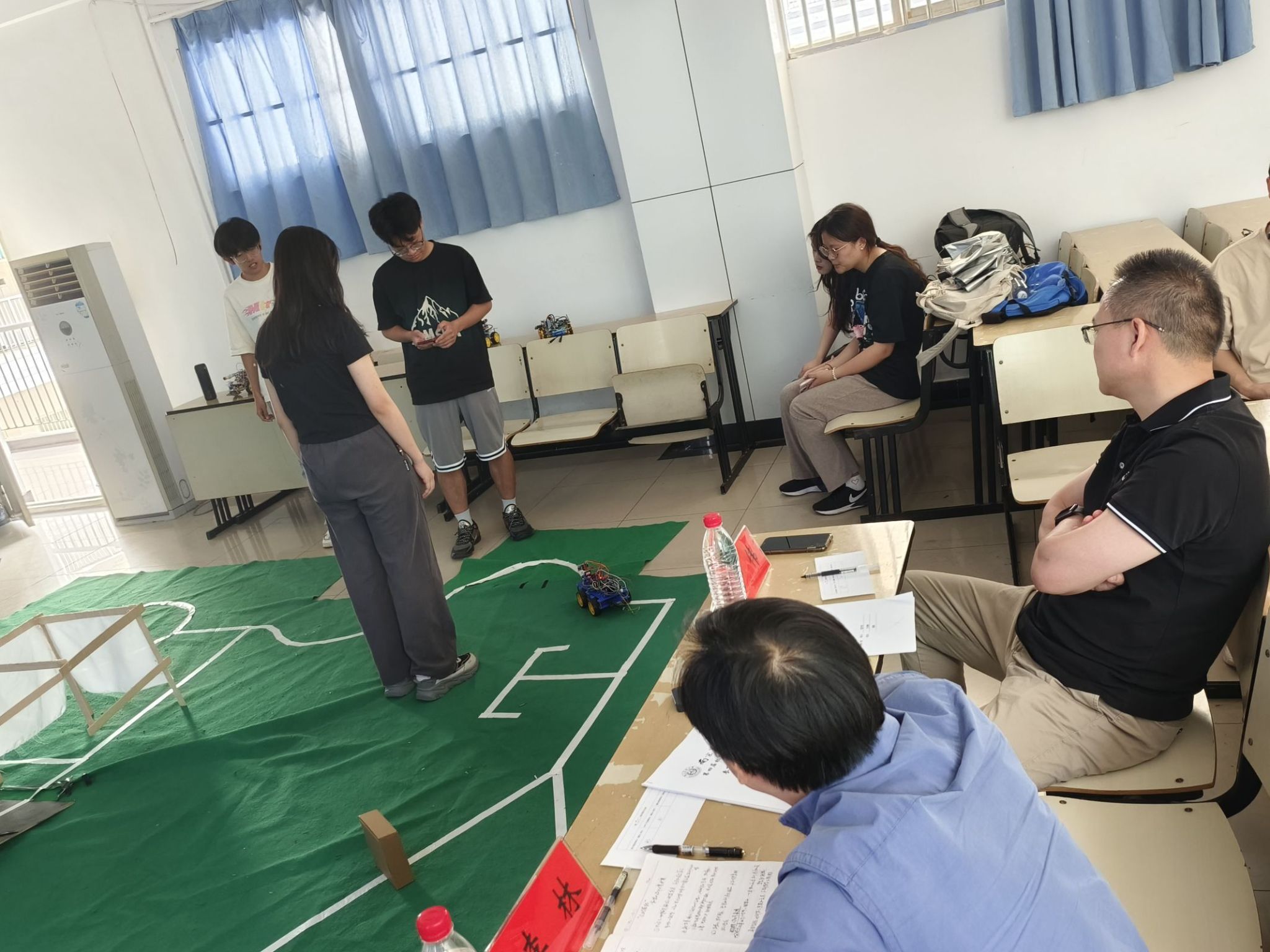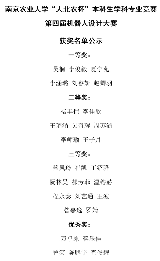 比赛现场,各参赛队伍按照抽签顺序进行成果汇报和功能演示。其中,功能演示部分需根据预设规则在赛道上用机器人完成相应任务,按照规定时间内赛道完成度进行评分。在演示结束后,评委老师结合每个队伍的表现给予了专业指导和点评。最终经过综合打分,最终评出一等奖队伍2个,二等奖队伍3个,三等奖队伍4个,获奖名单公示见下图。