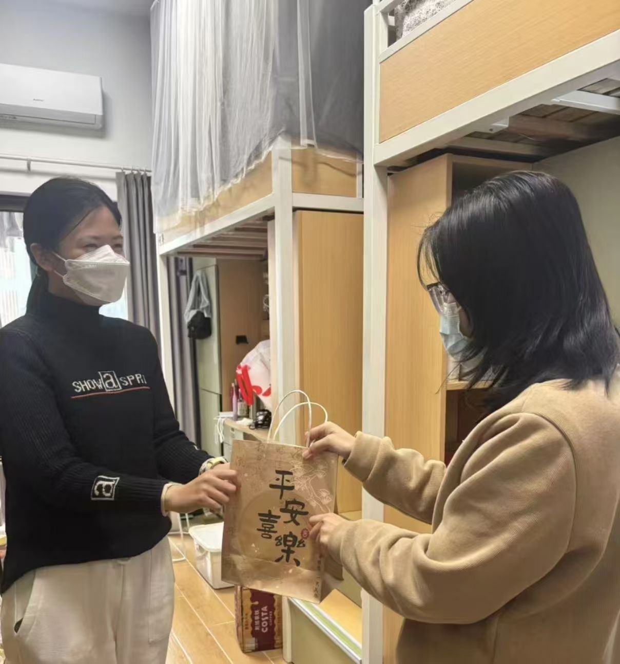 “老师可以帮我把礼物直接给下一位来领礼物的同学吗?希望大家一起开心度过冲刺阶段!”活动中考研学子们也互相传递喜悦与幸福,展现出智能院学子互帮互助的良好风貌。同时,未能及时到场领奖的学子们也收到了来自学院党员志愿者们送去教室与宿舍的祝福。