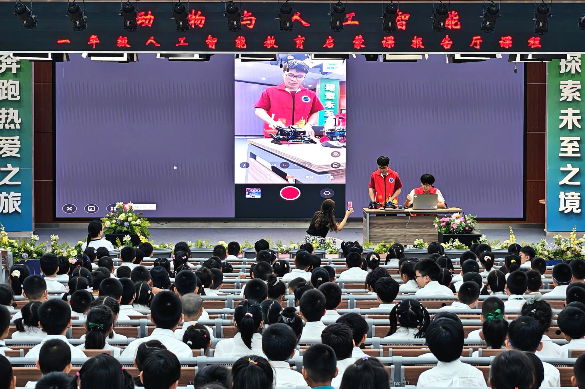 随后,刘杨副院长带来题为“人工智能与动物之间的故事”的专题分享。他从仿生智能切入,阐释了动物研究对人工智能发展的启发,丰富的仿生动物应用令现场惊叹不已;他解读了具身智能中大脑与行为关系的研究,指出这是“从生命智能迈向智能生命的关键一步”;并通过蚂蚁协作搬运的实例,生动说明了集群智能中团结合作的核心价值。刘杨寄语同学们:“多亲近自然、观察自然、向自然学习,从中汲取智慧。”