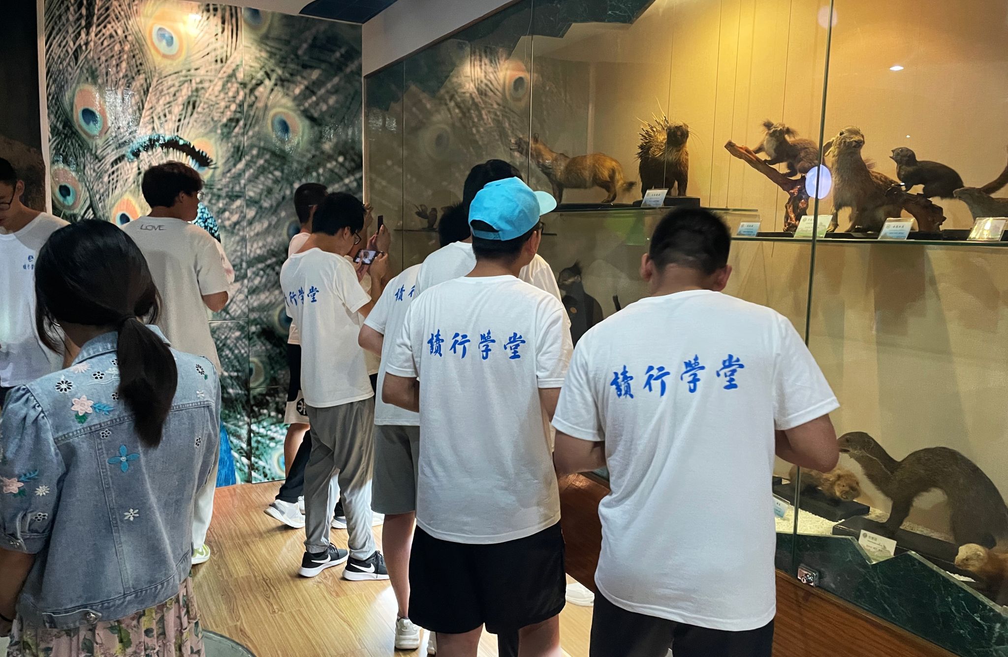 首先,生物标本馆探幽。中学师生在馆内志愿者的引导下分为两队有序参观了各类动植物展区;同时,讲解志愿者通过运用自身专业优势,详细地讲解了各类动植物的形态特征、生存环境和生活习性等。标本馆之行给中学师生提供了课堂之外接近自然、感受自然神奇魅力的宝贵机会。