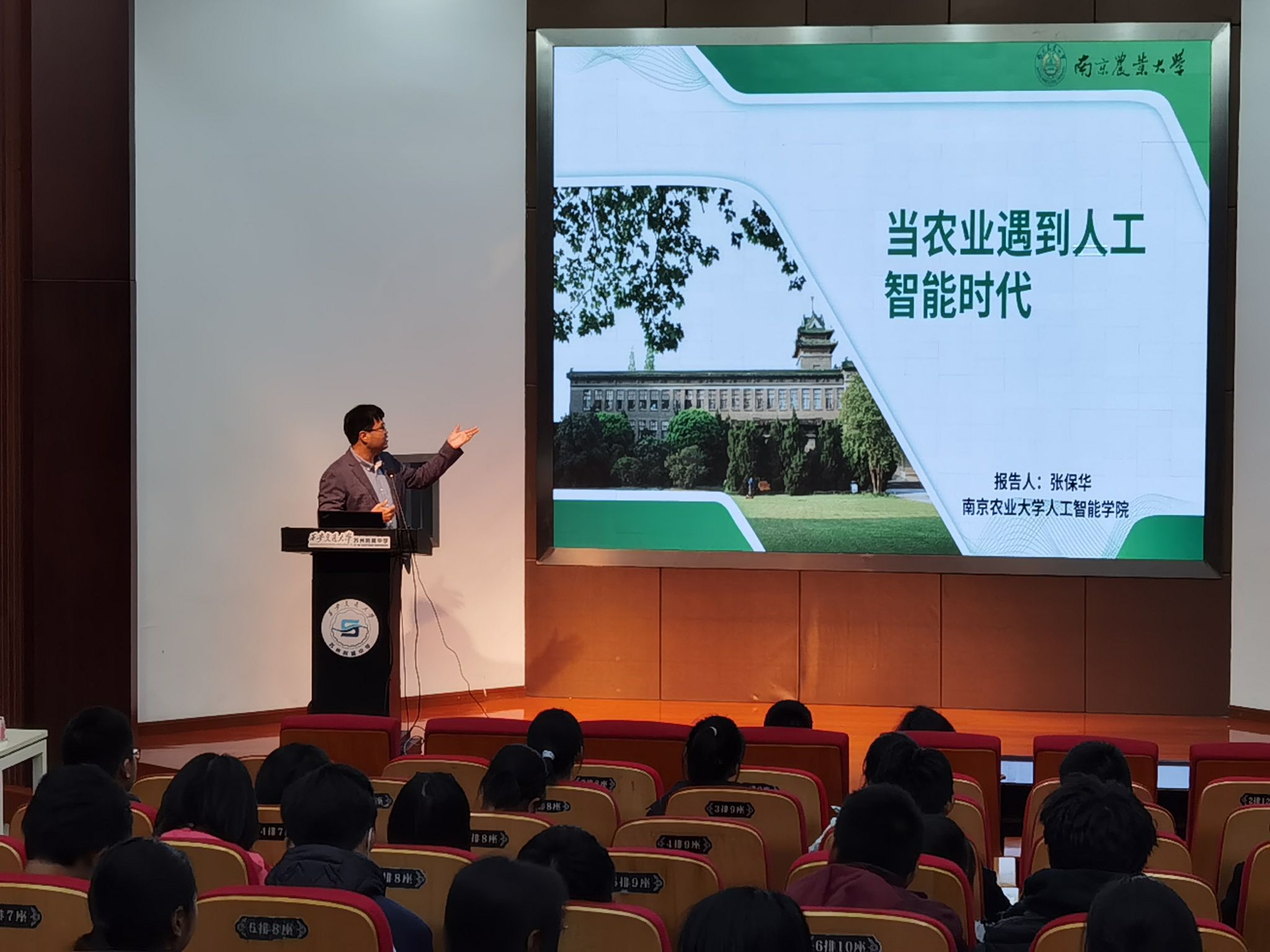 在相关领域的研究成果,让学生对农业与人工智能的融合有了全新的认识与深刻的理解。并引领同学们预见人工智能在乡村振兴战略实施推进过程中的广阔应用前景,带领学生们领略人工智能的魅力,在他们心中种下科技兴农的种子,激发学生对未来农业创新发展的无限遐想与探索热情。讲座后,张保华与同学们就“人工智能赋能农业”等方面的问题进行了互动与交流。