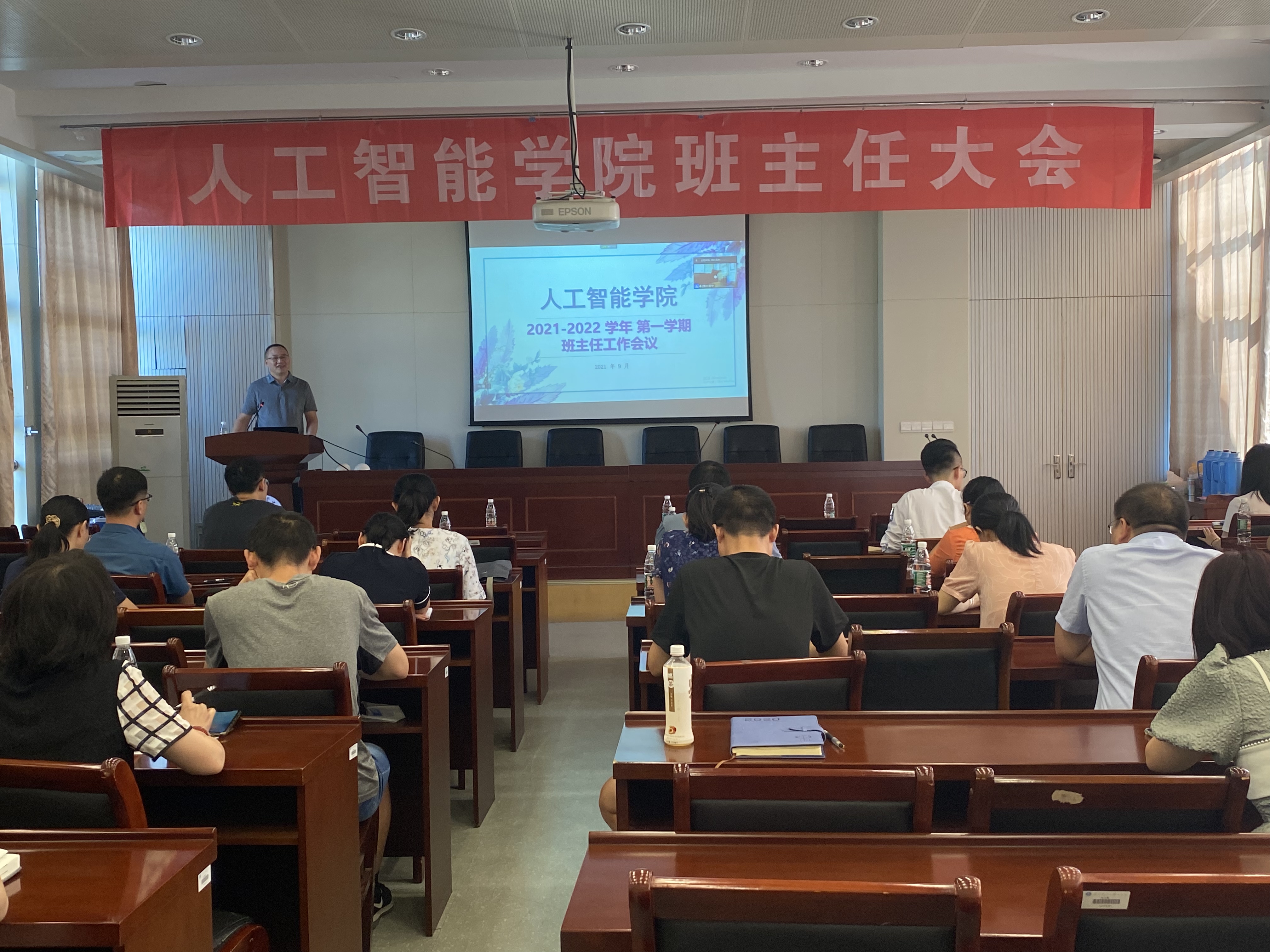 在浦口校区育贤楼C502召开新学期班主任全体大会,腾讯会议线上双校区同步进行。学院全体班主任、学生工作办公室全体辅导员线下或线上参加会议。会议由学院党委副书记卢伟主持。