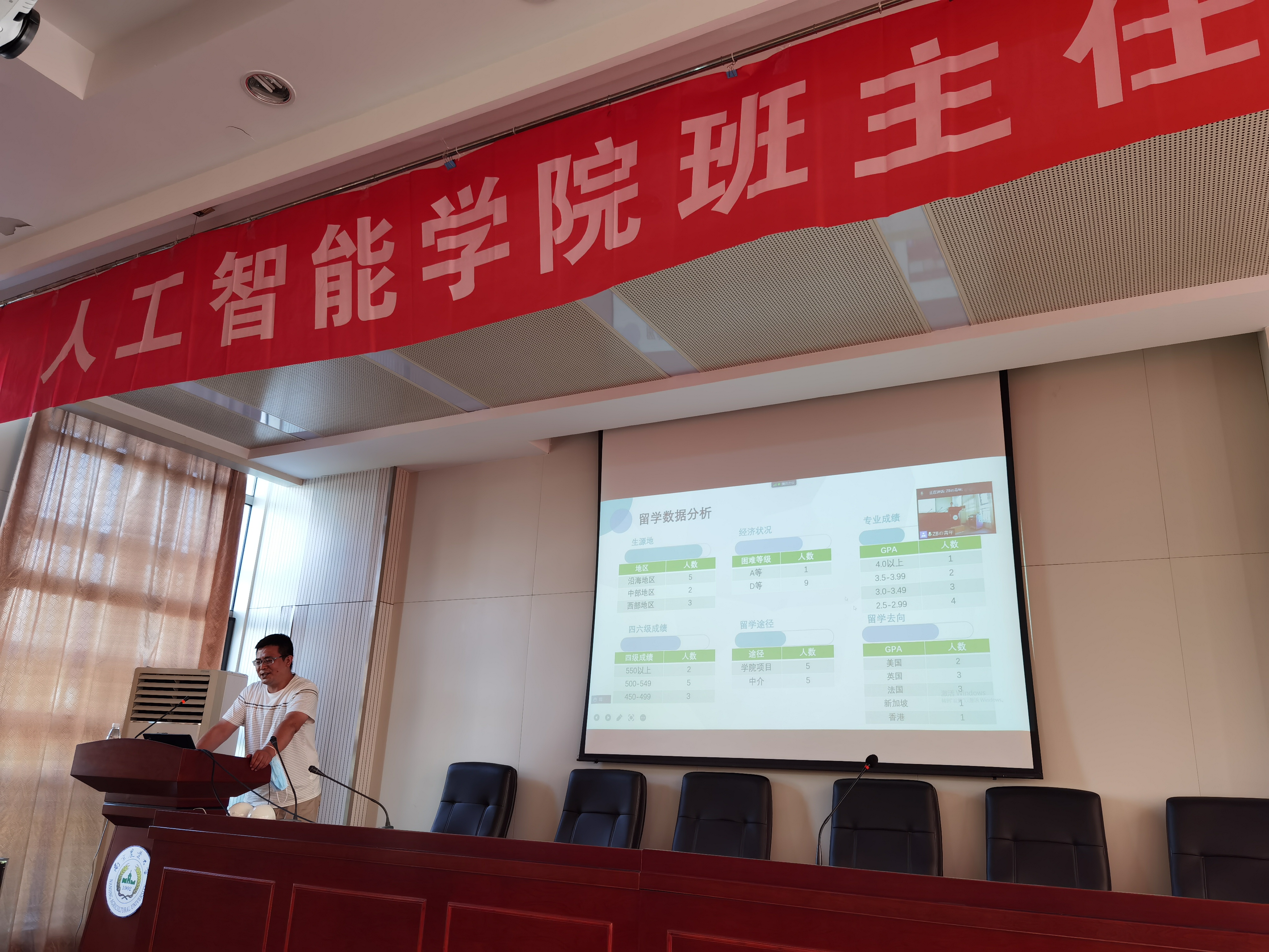 会议过程中,特邀了两位工作突出的班主任老师进行分享与交流。陈卫老师就出国出境深造引导方面展开分析与交流;杨红兵老师就境内升学指导方面展开分析与交流。
