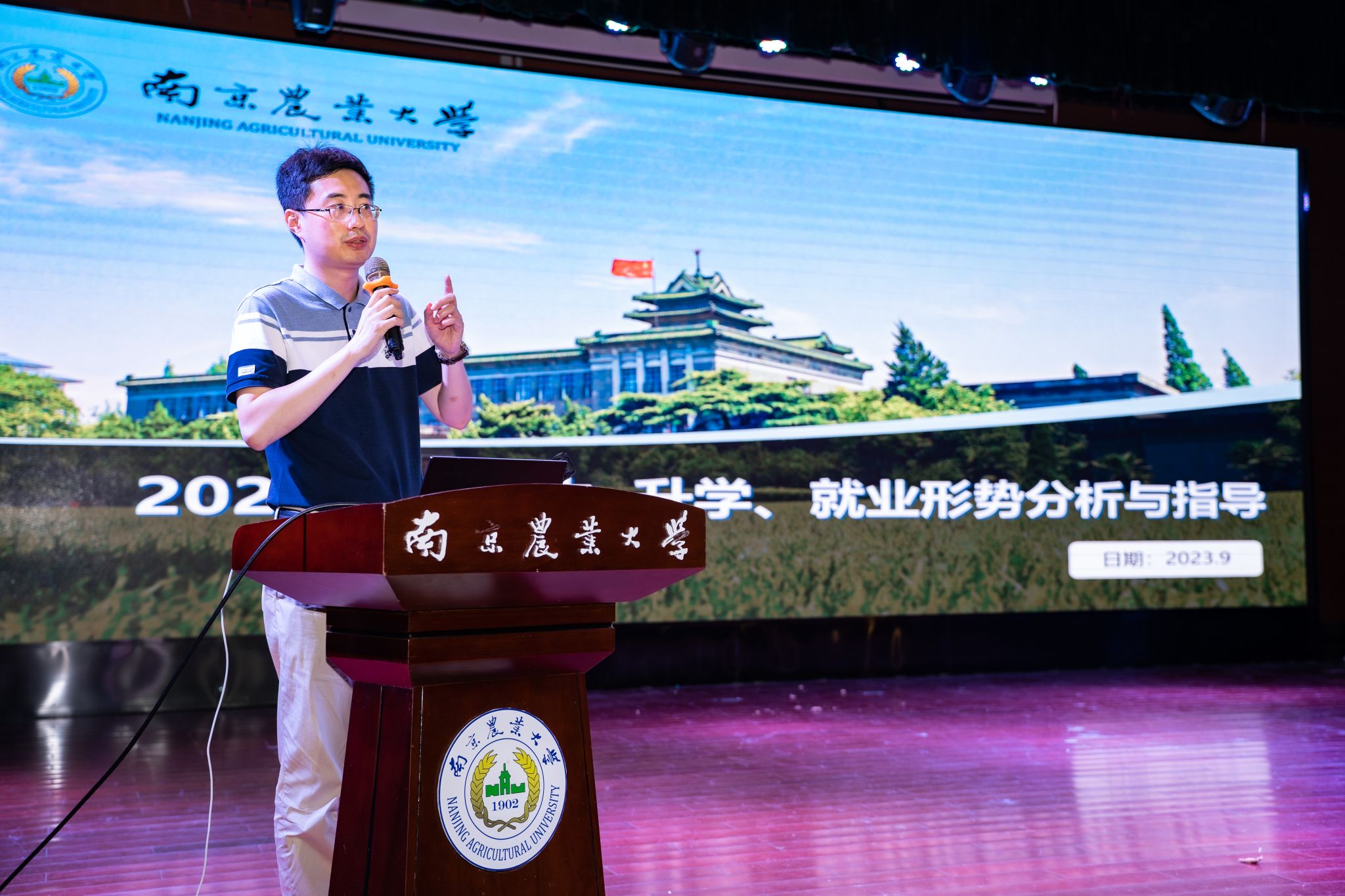 随后,湛斌从2024届考研形势与对策、就业形势与对策、简历质量提升、面试技巧指导、求职心态调适等方面展开宣讲。过程中,他结合当下的就业升学形势,对学院往届升学、就业情况着重进行了较为深入分析。此外,他针对“选调生”“应届身份”“三方协议”等毕业生重点关注的问题,进行了详细解答与阐释。