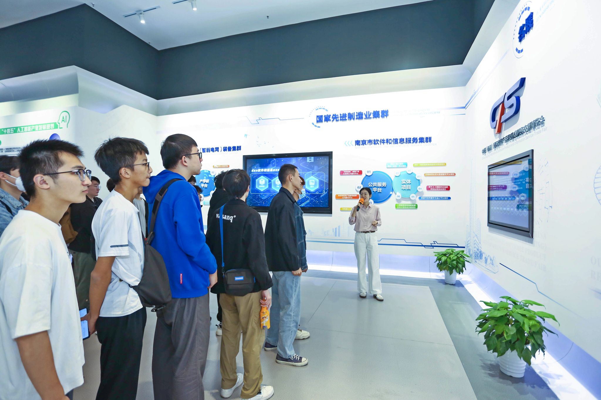 活动伊始,师生参观了中国软件名城产业博览馆,充分认知到雨花台区的六大产业集群,涵盖通信软件、信息安全、互联网、人工智能等多个领域。